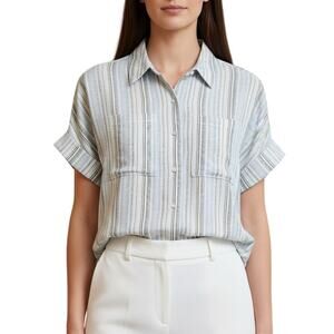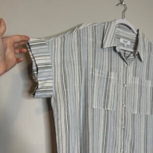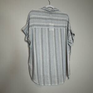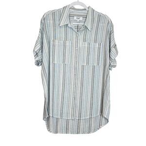 OAT Short Sleeve Blue Gray Striped Button Up Cotton Shirt Women’s Large NWT