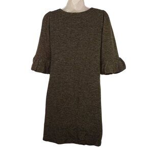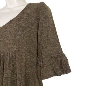OB2-12 Brown Sweater Knit Dress Women Size S V-Neck Bell Sleeves Winter Fall