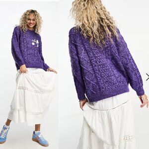 OBEY Flora Chunky Knit Sweater in Purple Small