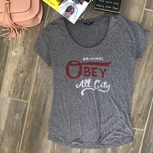 Gray All City scoop neck tee. Super soft and comfy. 50% polyester and 50% rayon.