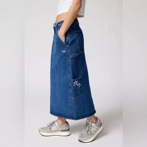 OBEY Juniper Embroidered Denim 90s Y2K Midi Skirt NWOT size 26