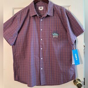 OBEY Men LG Gavin Woven Lavender Multi 100% Organic Cotton Short Sleeve Elephant