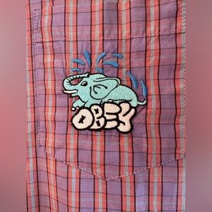 OBEY Men LG Gavin Woven Lavender Multi 100% Organic Cotton Short Sleeve Elephant