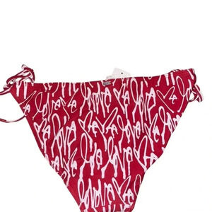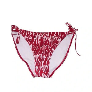 OBEY RED AND WHITE LOGO SCRIPT SIDE TIE BIKINI BOTTOMS Size L