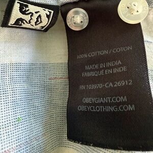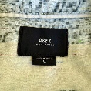 OBEY Worldwide Striped Button-Up Shirt Men’s M Blue White Cotton Short Sleeve