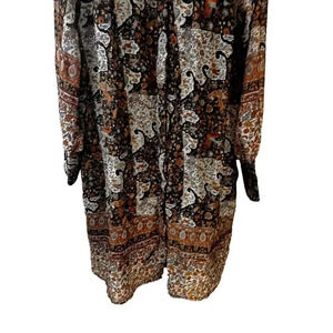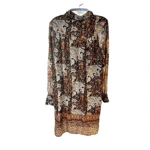 .OBJECT Objarya Fall Print Long Sleeve Button Up Short Shirt Dress. Boho Work Party