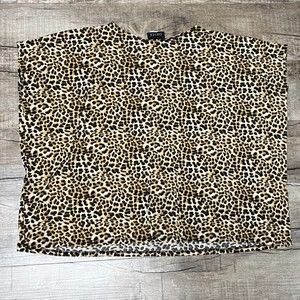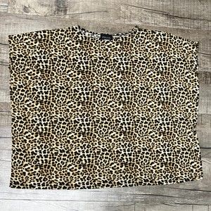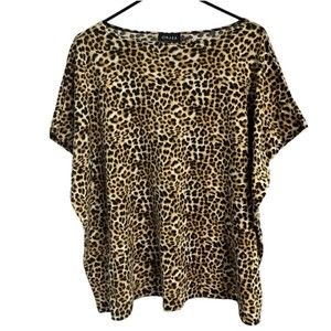 OBJEX Dark Brown Leopard Print Blouse Size M Short Sleeve Animal Print T-Shirt