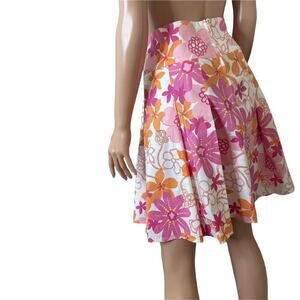 OBOE Flare Hem Floral Skirt White with Lavender and Red Floral print SZ M