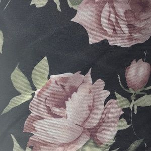 Item is brand new but without tags; tried on once and did not fit exactly how planned, so it’s just sat on the hanger for a few years now. A black & thin cami tank dress-polyester- sized lrg. A floral & black mesh (see-thru) cover-up; slips over dress with ease. Dress has stretch room somewhat. Coverup is mostly right to fit. All sized large and brand new! Excellent condition. Coverup is a long sleeve. Dress is short