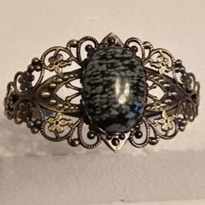 *NWOT* Hand Made Snowflake Obsidian Cuff Bracelet.