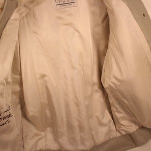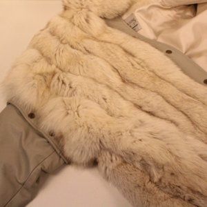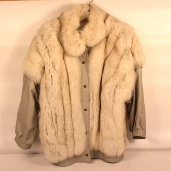 Womans vintage fox fur coat by O'Brien & Sons. Snap front closure and removable gray leather quilt lined sleeves. Embroidered monogram Size small Canvas storage bag included. small brown spot on lining (see photo)