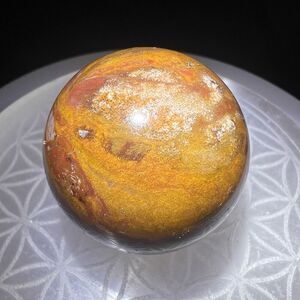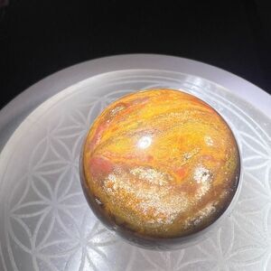 The red and yellow ocean jasper crystal sphere is a captivating fusion of fiery hues swirling within its smooth surface. Its vibrant colors evoke energy, passion, and creativity. Metaphysically, it is believed to enhance emotional balance, stimulate creativity, and promote positive energy flow. It also aids in grounding and centering, fostering a sense of stability and harmony within oneself and the environment.