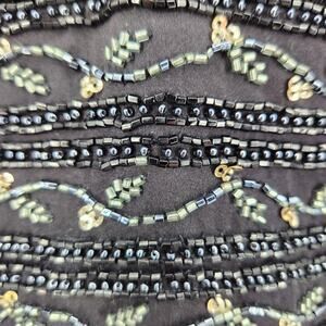 Step into divine sophistication with this OC OC vintage gown, inspired by Grecian draping and timeless elegance. Crafted in 100% silk, this gown flows effortlessly, featuring intricate beading and a sheer mesh back panel for a delicate, ethereal touch. Black. Size 8. Dry Clean.
