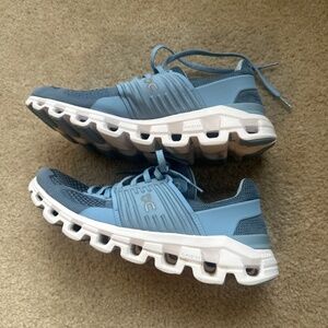 Worn a few times. They are a big snug for me. I am a size 9.5 and these fell a bit more like a 9. They have been washed as well.