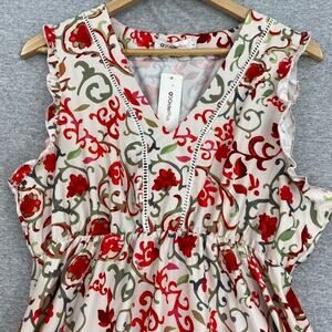 OC Order Plus Dress Womens Large Red Yellow Floral Hi Low Sleeveless V Neck