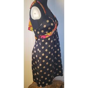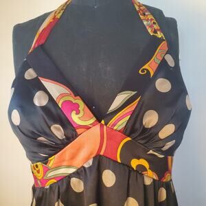 OC by OC Oleg Cassini Sz 6 Silk Halter Dress Black Polka Dot Floral Self Slip