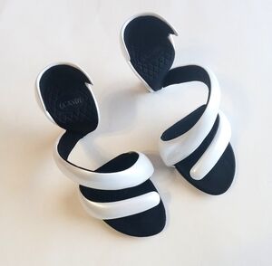 OCANDY white Twisted open Toe Statement Party Heels Designer Chic