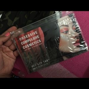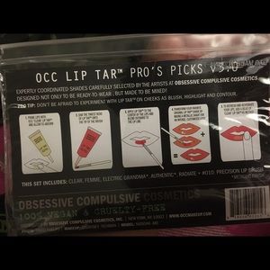 Obsessive Compulsive Cosmetics! 2 Full Size & 3 Sample Lip Tar glosses! All New except I swatched the pink one. They DO NOT come with a lip brush ... These tubes are not intended to touch your lips, you apply with a lip brush😊 comes with clear zip bag & OCC card with tips on how to use Lip Tar!