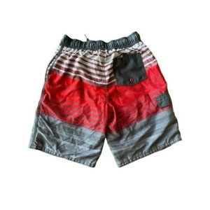 Ocean Pacific OP Board Shorts Red Stripe 32-34 Size M Lined Black Gray