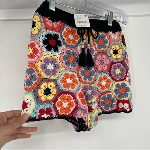 OCEANUS Ava Rainbow Colorful Handmade Drawstring Beach Crochet Shorts XS NWT