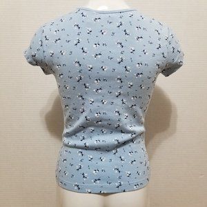Floral print v-neck top. Ruching on bust. Stretch. Y2K!