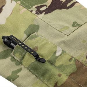 Operational camouflage pattern uniform.