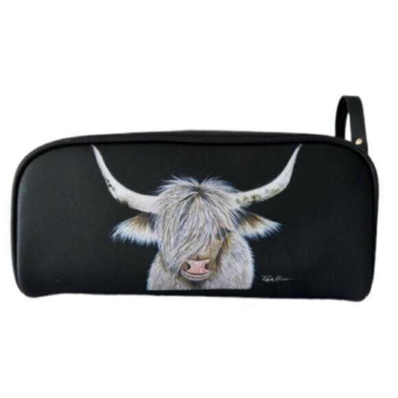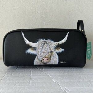 OCS Design Cow Large Cosmetic Bag Pouch Black Top Double zip closure & handle