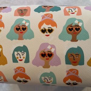 White pleather zipper bag with women’s heads!