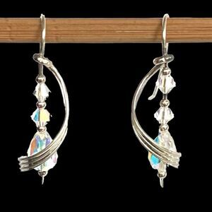 OD# Beautiful 1 1/2” Crystal & Silver Dangle Earrings
