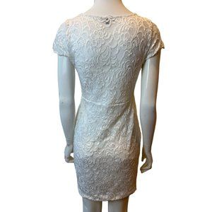 ODCOCD Womens Lace Sheath Mini Dress Cap Sleeve Crew Neck White Size Medium