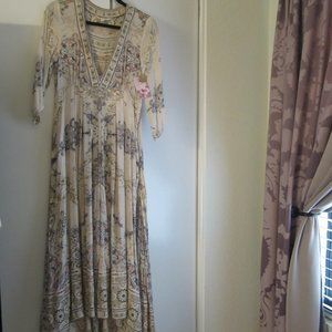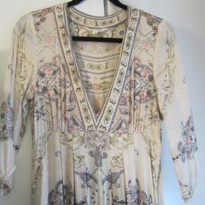 ODD MOLLY - SzXS - Ivory with Delicate Print Silk Fabric Maxi Dress