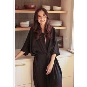 Women's dress by ODDBIRD. Size M/L. This is the Ruya tunic dress in black (midnight). Website says this is sustainable viscose but there is no fabric tag. Front zip, front belt tie that can be tied various ways. NWT new with tags.
