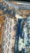 Chic Bohemian blouse with intricate patterns. Features blue and brown tones. Has a tie front and bell sleeves.