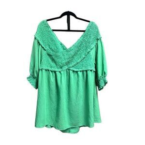 ODDY Green Crisscross Short Sleeve Ruched Top Size 3XL