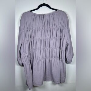ODDY Lavender Smocked Blouse with Relaxed Fit and 3/4 Length Sleeves. Size 2X
