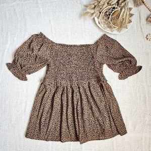 NWT Oddy off the shoulder peplum top in camel animal print