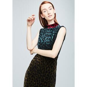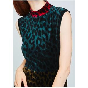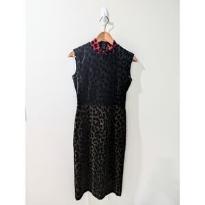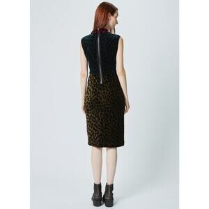 ODEEH Velvet Leopard Color Block Dress