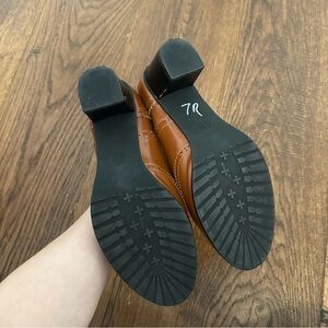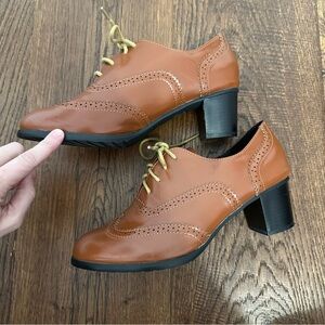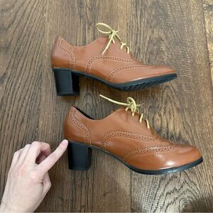 ODEMA Brown Brogue Lace Up Oxford Wing Tip Chunky Heels Patent Leather Shoes 8.5