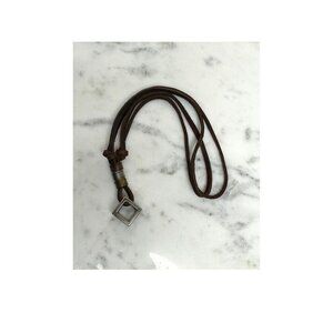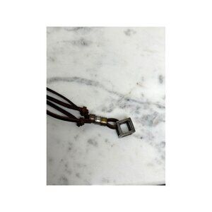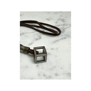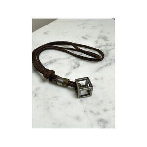 This genuine leather necklace features a unique hollow cubic pendant. Its brown color and unisex design make it perfect for any occasion. A stylish addition to any jewelry collection.