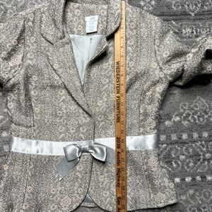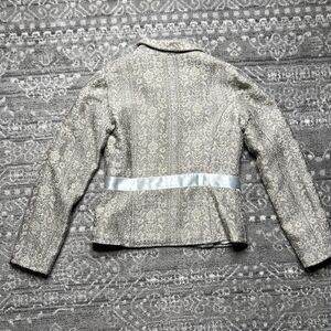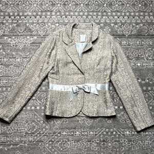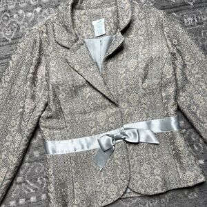 ODILLE Anthropologie BROCADE Jacket Blazer Size 8 Wool Blend Bow Detail Coquette