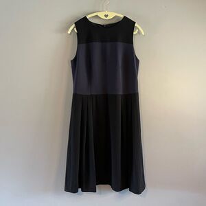 Stunning sleeveless navy & black color block dress from Of / Mercer, in a size 4. Featuring crew neckline, fitted bodice, pleated detail to the a-line skirt, & hidden back zipper; fully lined. Slight wear noted to the back zipper hardware, otherwise excellent, if not like new condition ✨ Please see other Of / Mercer dress in additional listing, bundle & save ✨ Approximate flat measurements: P2P 17” Waist 15” Hip 21” Length (shoulder to hem) 36.75”