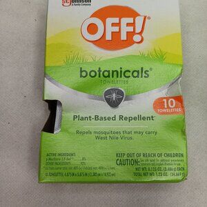 U2-10, The OFF! Botanicals 10CT Plant Based Mosquito Repellent Towelettes are a convenient and effective way to repel mosquitoes while outdoors. These Deet-free wipes are EPA registered and offer 12 hours of prevention. With a pack of 20 towelettes, these white wipes are easy to use and feature a repell/deter control method. Pet safe, organic, and odorless, they are a great addition to any camping or hiking trip. The sprayer design and compact packaging make them a practical choice for outdoor adventures. brand new,