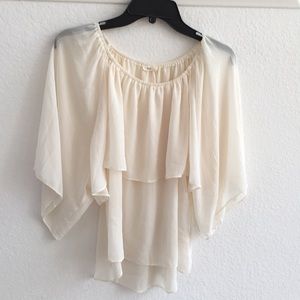 🌸🌺 VERY GOOD CONDITION THIS BEAUTIFUL CREAM COLOR BLOUSE WITH RUFFLES 3/4 FLUTTER SLEEVES 💦🌈