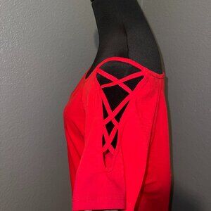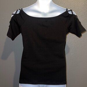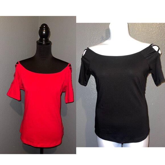 2 - OFF SHOULDER TOPS These tops are popular for their "Y2K" aesthetic. Features a wide boat neckline that can be worn off the shoulder Short Criss Cross Sleeves. With lots of Stretch. Great addition to your Spring and Summer wardrobe.