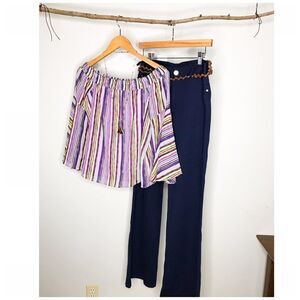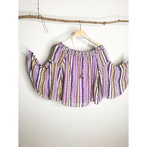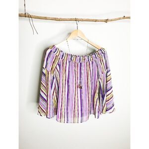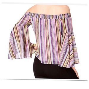 Bar III Off Shoulder Striped Top with Bell Sleeves