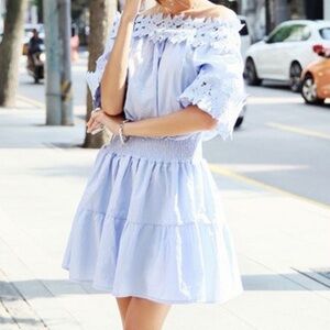 Off The Shoulder Balloon Sleeve A-Line Mini Dress With Lace Embellish (NWOT)