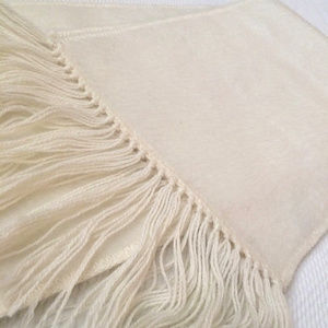 Super soft luxurious off white scarf made of Alpaca hair. 35" long plus 5" of fringe.