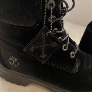 OFF- WHITE Virgil Abloh X TIMBERLAND Black Velvet Boots Women Size8