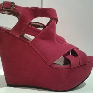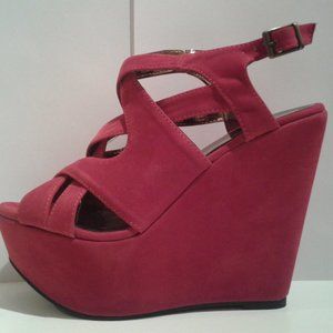 OFFICE London Wind Up Wedge Red Microfibre Heels (Brand-New)!