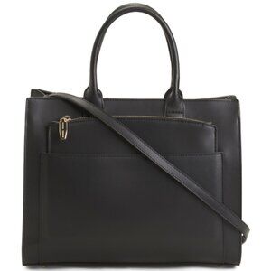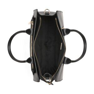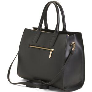 Dual carry handles, gold tone hardware, detachable adjustable shoulder strap, smooth finish